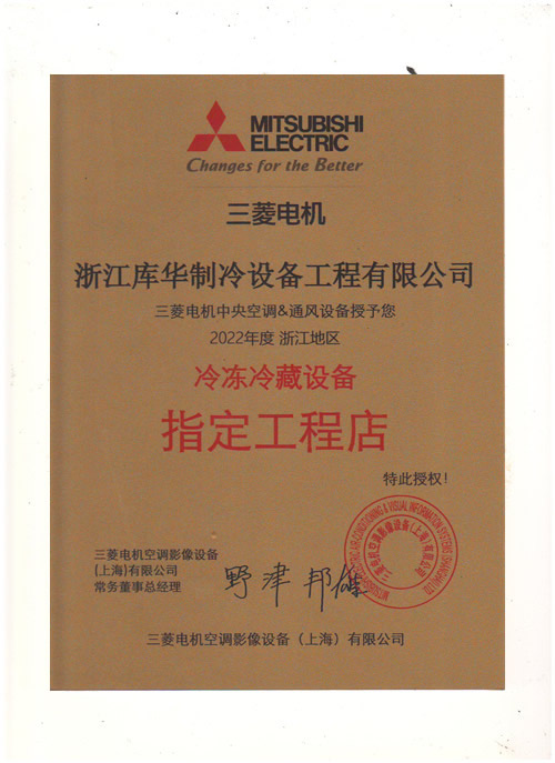 2022年度三菱電機(jī)冷凍機(jī)指定工程店——庫(kù)華制冷